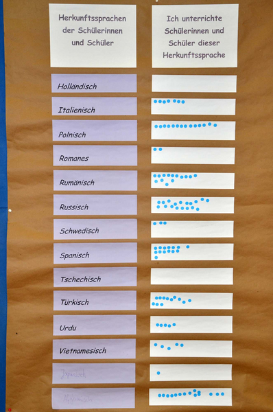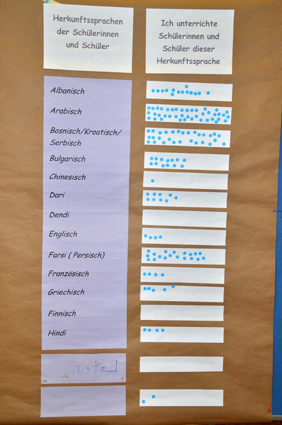 Im Mittelpunkt der Veranstaltung stand die Frage, wie sinnvoll es ist, die Herkunftssprachen der Kinder in den Unterricht einzubeziehen und welche Herausforderungen bzw. welche Chancen sich daraus ergeben. Dazu gab es am Vormittag Vorträge mit Beispielen für Umsetzungsmöglichkeiten und einen Marktplatz mit den Besonderheiten der verschiedenen Sprachen, die die Kinder mitbringen.