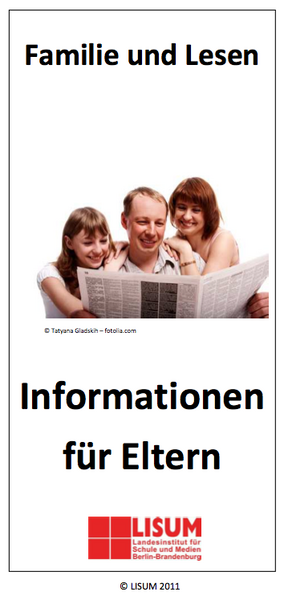 Im Flyer „Familie und Lesen“ finden Eltern Tipps, wie sie ihr Kind auf dem Weg zur guten Leserin/zum guten Leser unterstützen können. Im Flyer sind geordnet nach Phasen – vor der Schule, erste Schuljahre, weiterführende Schuljahre – Leseaktivitäten aufgelistet, mit denen Eltern die Entwicklung der Lesekompetenz ihres Kindes positiv beeinflussen können.
