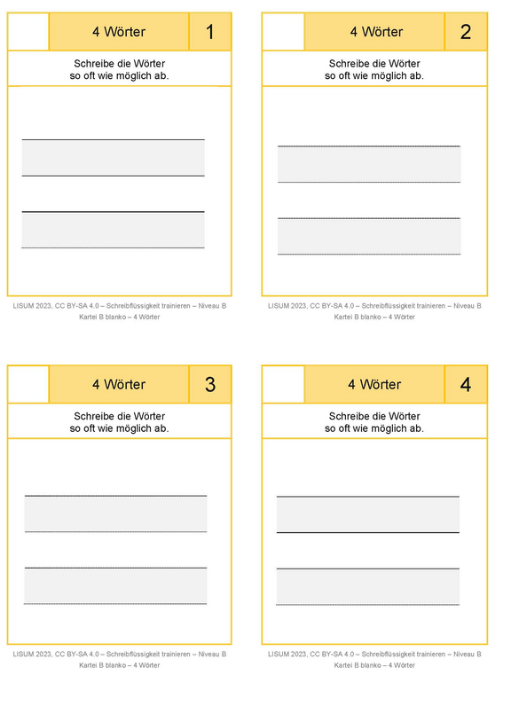 Die hier vorgestellte Methode für ein Schreibflüssigkeitstraining eignet sich natürlich auch, um einen Klassen- oder den Fachwortschatz üben zu lassen. Auch im Fremdsprachen- oder DaZ-Unterricht - zum Lernen der Vokabeln - ist diese Methode geeignet. Daher können Sie diese Vorlagen beliebig bearbeiten und mit eigenem Wortmaterial befüllen.