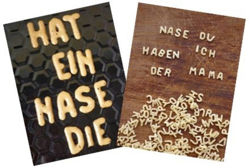 Wörter aus Buchstabenkeksen oder Buchstabennudeln