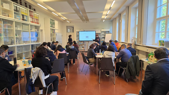 Den Schulleitenden und Lehrkräften aus der im Osten Chinas gelegenen Millionenstadt Nanjing wurden dort die Strukturen, Aufgaben und Arbeitsweisen des bundesweit einmaligen Kompetenzzentrums erläutert.