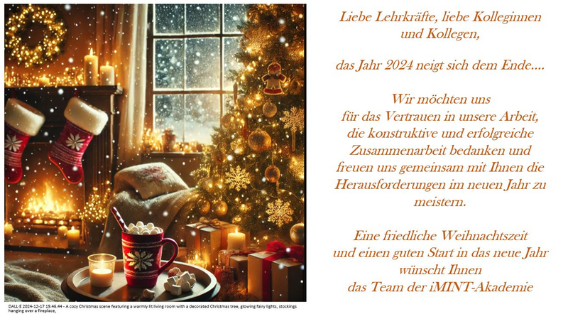 Das Team der iMINT-Akademie wünscht eine besinnliche Adventszeit, friedliche Festtage und einen guten Rutsch.