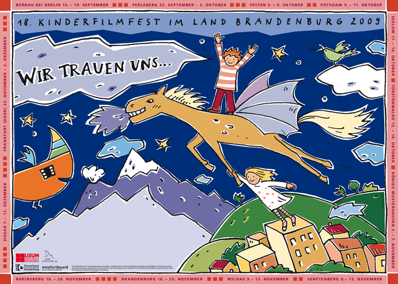 Kinderfilmfest 2009"Wir trauen uns..." – In allen Filmen müssen die Jungen und Mädchen irgendwie über ihren Schatten springen, sich ein Herz fassen und etwas tun, was sie sich selbst und was andere ihnen gar nicht zugetraut hätten.