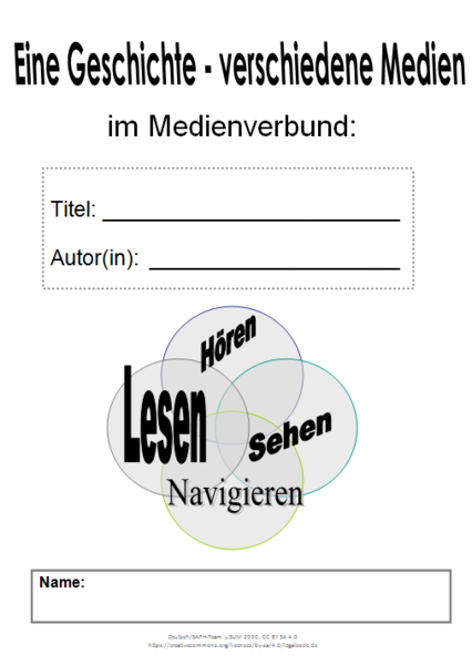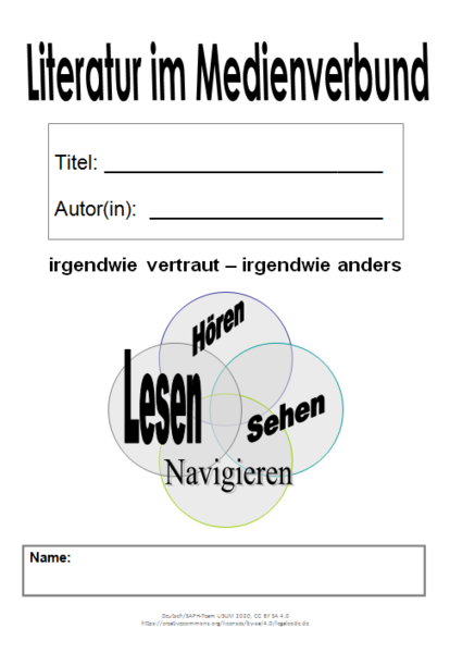Für die Niveaustufen C/D wurde ein 8-seitiges Medienvergleichsheft „Literatur im Medienverbund – irgendwie vertraut, irgendwie anders“ zum Vergleich von Medien im Verbund entwickelt. Das Heft wird auf zwei DIN-A4-Blättern doppelseitig ausgedruckt und dann einmal gefaltet.