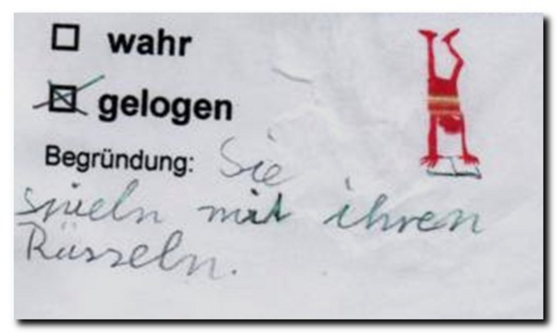 Nach der Lektüre eines Sachbuchs oder eines Sachtextes formulieren die Kinder in Partnerarbeit richtige und falsche Aussagen zum Textinhalt. Sie schreiben ihre Sätze auf Kärtchen und vermerken die Lösung auf der Rückseite. Bei einer falschen Aussage wird der richtige Satz notiert. Alle Kärtchen werden in einem Kuvert gesammelt.