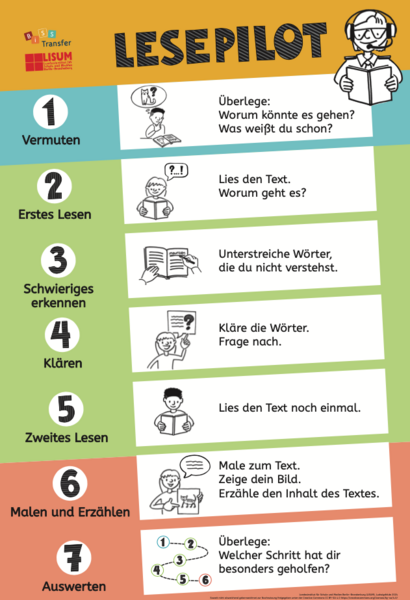 Der LESEPILOT macht Schülerinnen und Schüler mit grundlegendem Lesestrategiewissen bekannt. Eine klare Schrittfolge "lenkt" sie durch den Text und fordert sie zum Reflektieren ihres Leseprozesses auf.
