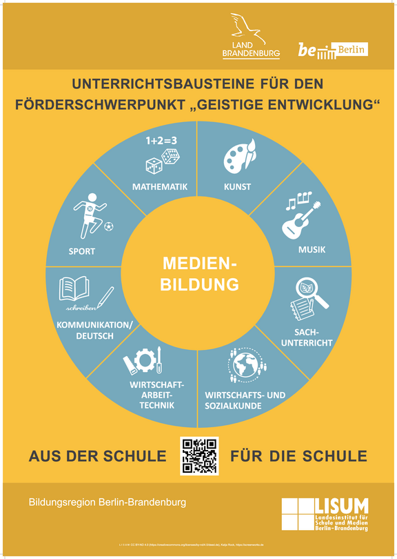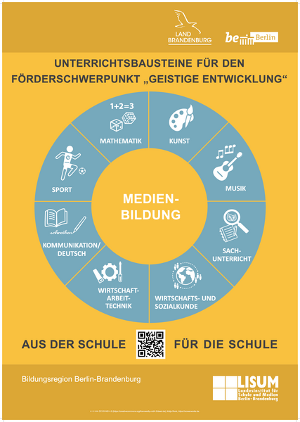 - Daneben gilt im Bildungsraum Berlin-Brandenburg das Basiscurriculum Medienbildung (verfügbar unter: http://i.bsbb.eu/o, Zugriff am: 01.11.2021). Es ist als fachübergreifender Teil B des Rahmenlehrplans für die Jahrgangsstufen 1-10 seit 2017 in den Brandenburger und Berliner Schulen unterrichtswirksam (verfügbar unter: http://i.bsbb.eu/rlp110, Zugriff am: 01.11.2021). Für Schüler:innen mit sonderpädagogischem Förderbedarf im Förderschwerpunkt "Geistige Entwicklung" ist das Basiscurriculum Medienbildung nicht verbindlich. Dennoch kann es eine Orientierung für die Bereiche digitaler Medienbildung in der Schule geben und Anschlüsse zwischen den Rahmenlehrplänen „Geistige Entwicklung“ und dem Rahmenlehrplan für die Jahrgangsstufen 1-10 herstellen.