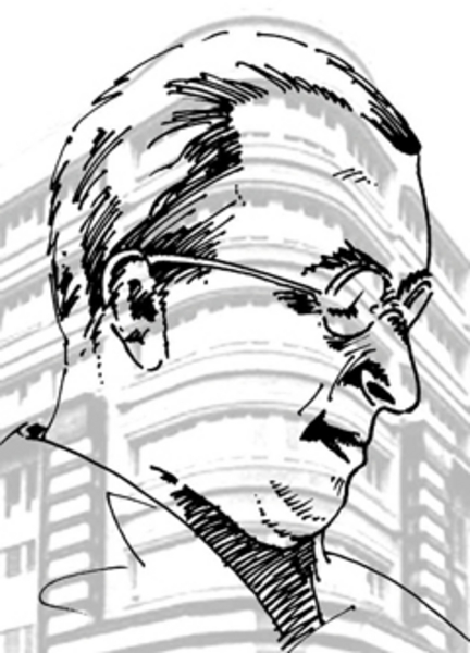So wie das Gebäude einem wechselhaften historischen Schicksal unterworfen war, so vollzog sich auch das Leben seines Architekten, der drei Staatsbürgerschaften besaß. Erich Mendelsohn (geboren am 21.3.1887 in Olsztyn, ehemaliges Allenstein in Ostpreußen) emigrierte als ein vom Berufsverbot betroffener Jude bereits 1933 nach London, da seine Arbeit als „entartete Kunst“* gebrandmarkt wurde. Sein Vermögen wurde von den Nationalsozialisten beschlagnahmt, sein Name aus der Liste des Bundes Deutscher Architekten gestrichen, seine Mitgliedschaft in der Preußischen Akademie der Künste aufgehoben. Der bis zu diesem Zeitpunkt erfolgreiche Architekt hatte Architekturgeschichte geschrieben, so zum Beispiel durch expressionistische Gebäude wie den „Einsteinturm“ des Astrophysikalischen Instituts in Potsdam und die Hutfabrik Steinberg, Hermann & Co. in Luckenwalde. Die Kaufhäuser Schocken in Nürnberg, Stuttgart und Chemnitz sowie das Warenhaus Petersdorff in Breslau begründeten seinen Ruhm als Architekt organischen Bauens: Streifenartige Gliederungen mit abgerundeten Ecklösungen waren sein Markenzeichen. Mit der Emigration nach London vollzog er zugleich innerlich den Bruch mit Deutschland: Er änderte 1939 seinen Vornamen in Eric, schrieb von nun an nicht mehr in Sütterlin, sondern in lateinischer Schrift.