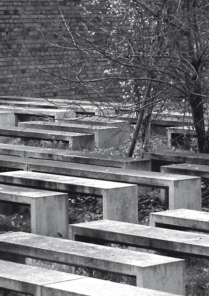 Bei der schweren Bombardierung des Viertels am 3. Februar 1945 brannte ebenfalls die Synagoge aus. Die Ruine stand noch bis 1956, dann wurde sie abgerissen. Heute steht im Hinterhof ein Mahnmal, das an die große Liberale Synagoge in Kreuzberg erinnert. Die Erbauer Zvi Hecker, Micha Ullmann und Eyal Weizmann nahmen bei der Gestaltung Bezug auf den Grundriss des Synagogensaals und die Anordnung der Sitzreihen. Ganz bewusst bezogen sie die Natur, die Bäume und Sträucher des Hinterhofes, als Zeichen der Vergänglichkeit und der Zeit mit ein. Sie verglichen die Abfolge der Sitzreihen mit den Zeilen eines Buches, eines heiligen Buches: dem Talmud.