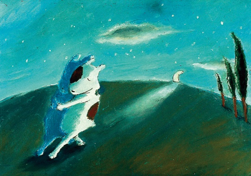 Auch in LITTLE WOLF entsteht ein Zusammenspiel zwischen dem hingebungsvoll heulenden kleinen Wolf und der dazu tanzenden Mondsichel, die ihn auf ihre Reise über den Nachthimmel mitnimmt. Mit Aufgang der Sonne setzt sie ihn sicher auf der Erde ab, zur großen Freude und Erleichterung des Wolfsrudels.