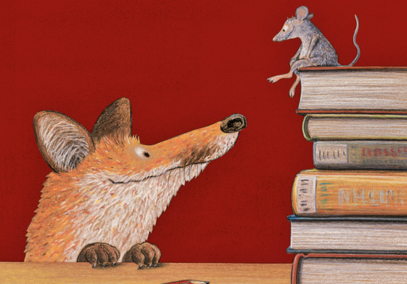Eigentlich wollte der Fuchs die Maus fressen, die aber vor ihm davonläuft, in einem Kellerfenster verschwindet und den Fuchs so an einen Ort lockt, den nicht kennt: "Eine Pippi … was?", fragt der Fuchs. "Eine Bibliothek", sagt die Maus. Der Fuchs findet Gefallen an den Büchern – auch wenn er erst noch lesen lernen muss. Ausgerechnet ein Huhn hilft ihm dabei! Ob es um Hühnerknochen oder Zaubersprüche geht, in der Bibliothek findet jeder etwas. Und inmitten der Bücher versöhnen sich gar Fuchs und Huhn.