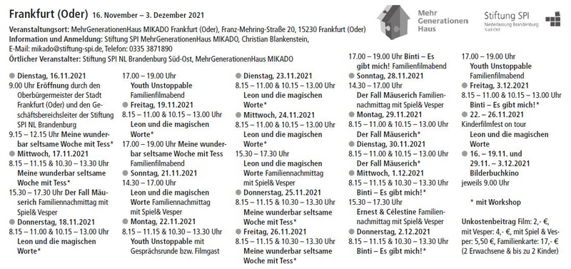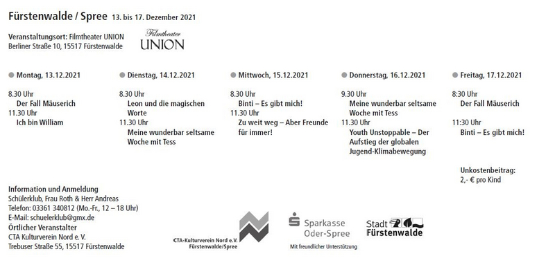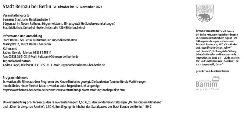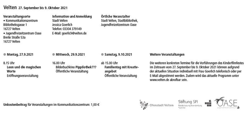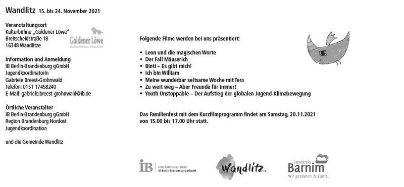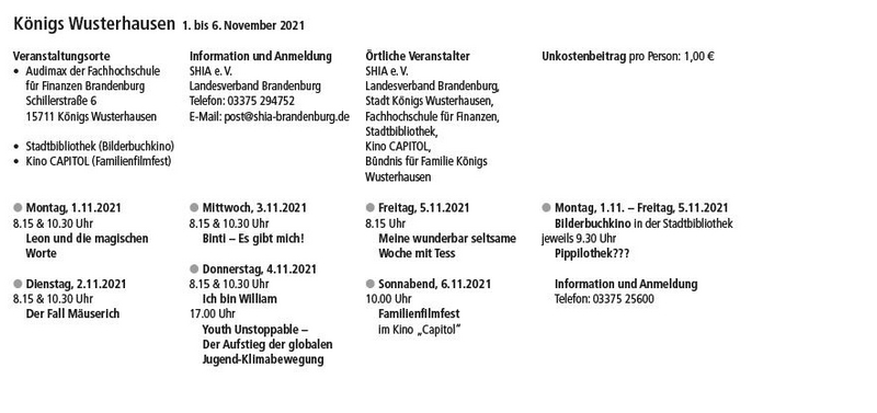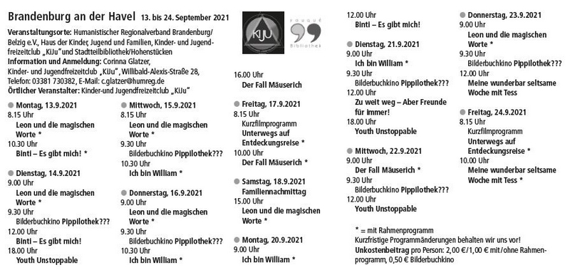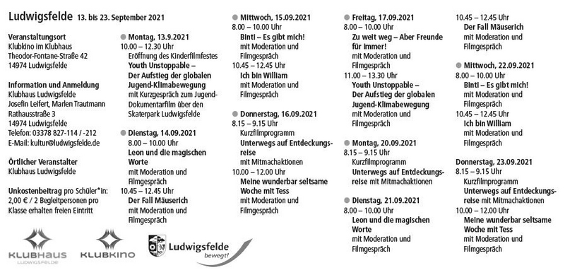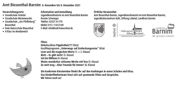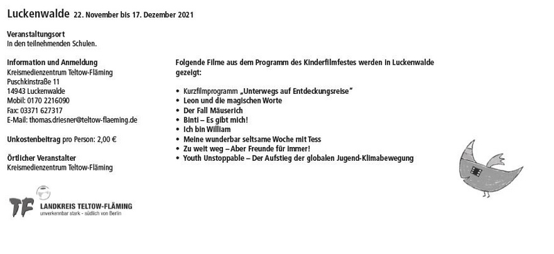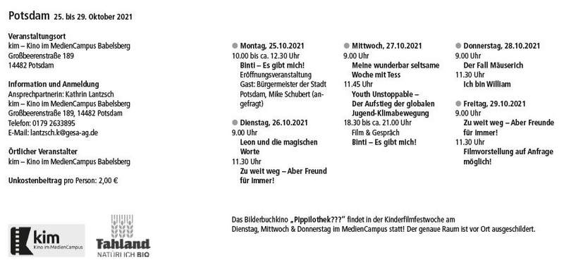 Das Kinderfilmfest in Rheinsberg wird auf den Januar 2021 verschoben.