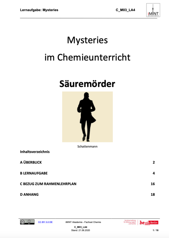 Um einen fiktiven Mord aufzuklären, der mit Säure vertuscht wurde, muss in diesem Material stöchiometrisch gerechnet werden. Dabei werden chemische Kenntnisse über Säuren angewandt sowie Konzentrationen während einer Neutralisationsreaktion berechnet.